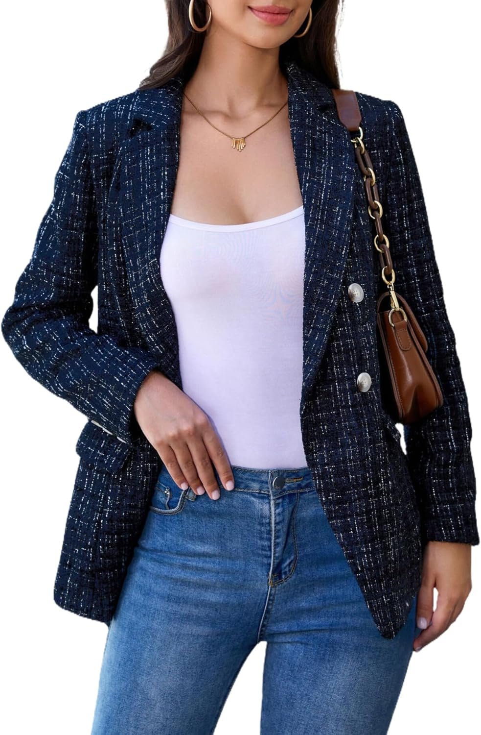 Features:The blazers for women featuring long sve blazer jackets,front side pockets,lapel collar,plaid blazer,loose casual blazer,open front casual work office business tweed blazers for women