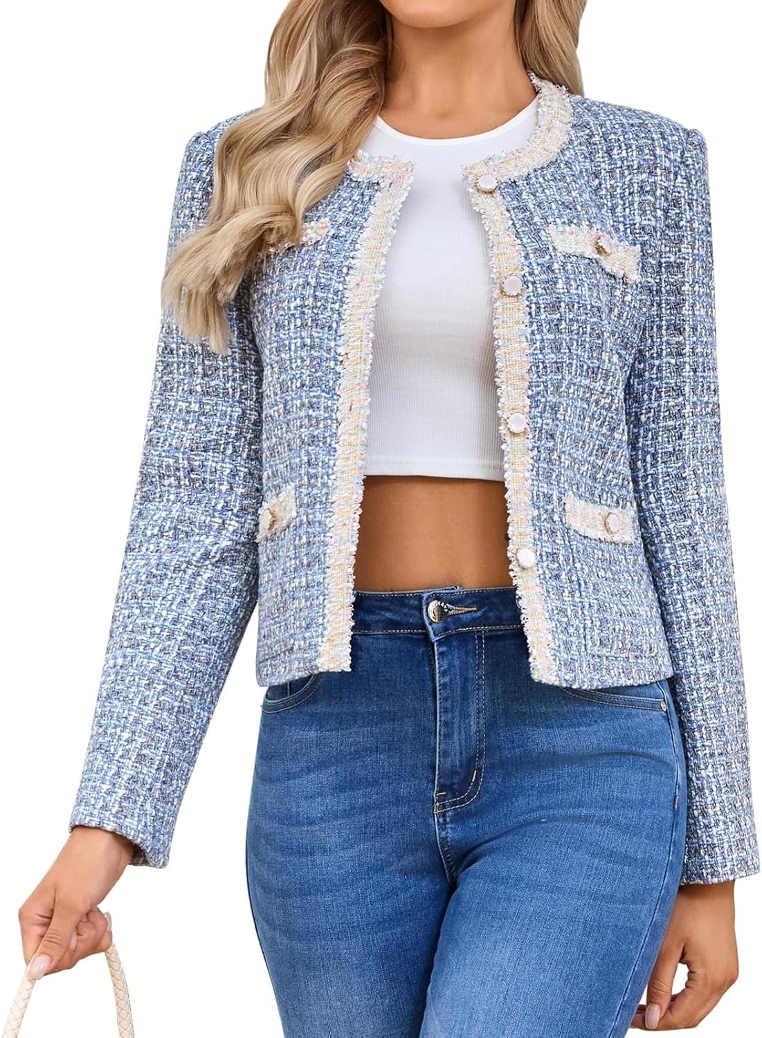 [Material] Tweed jackets women is made of polyester with lining, lightweight, warm, wrinkle free, comfortable to wear, perfect jacket for year round, semi formal and casual look