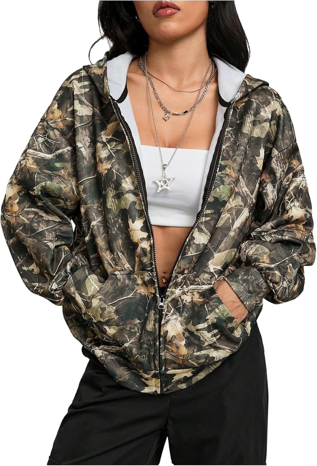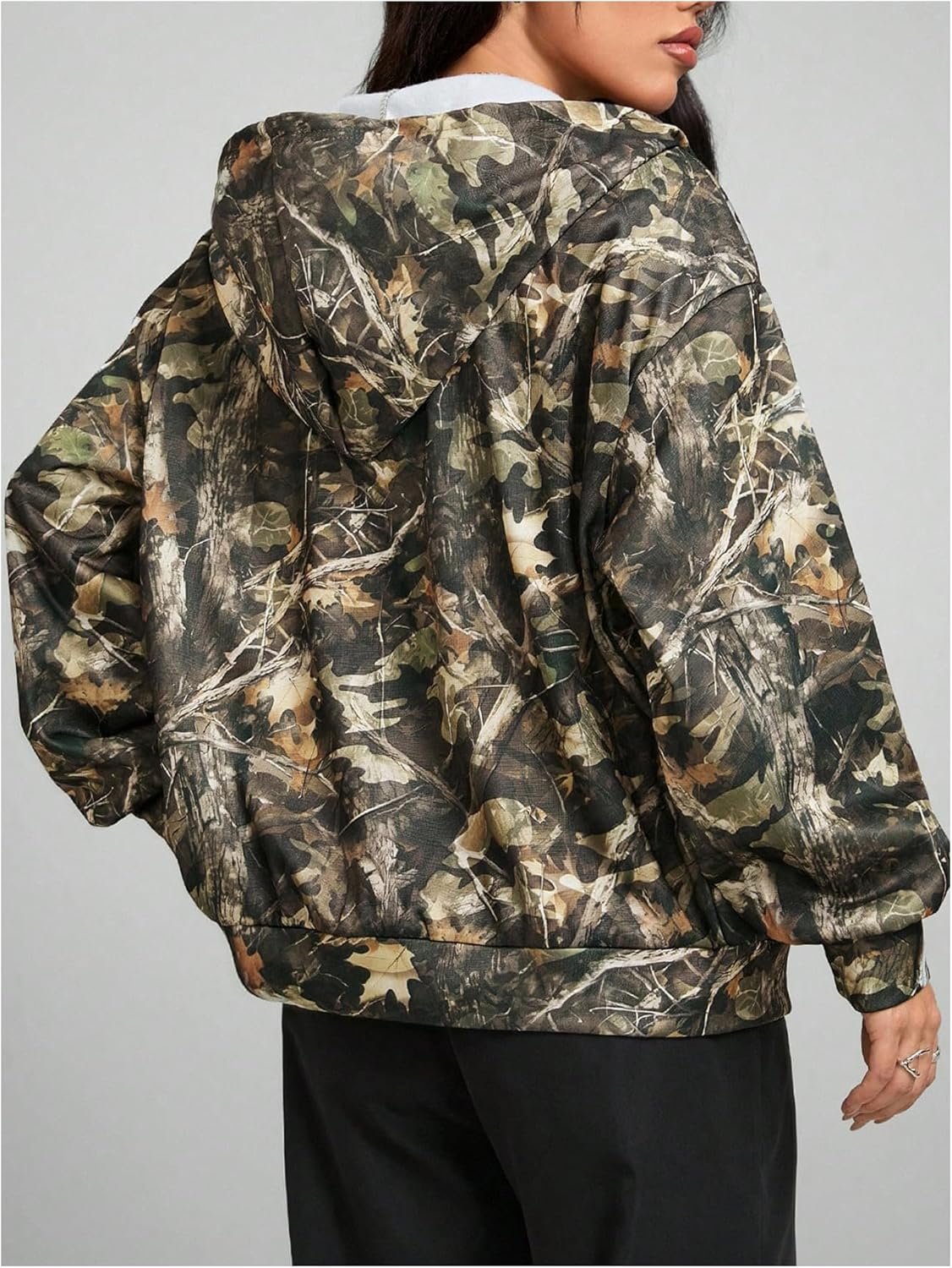 • Features: Oversized hoodies for women, with full zipper, camo graphic, hooded neck, long sleeve, drop shoulder, pockets